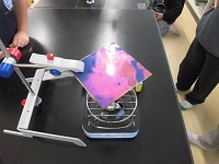 「もののあたたまり方」では、空気・鉄・水のあたたまり方を実験で調べました。鉄をあたためる実験では、示温テープの変化に注目し、あたたまり方についてグループで考えました。