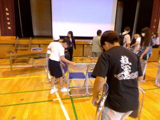 セーフティー教室のあと、椅子の片付けを行いました。学校のために働くすがたは立派な高学年です。日々の委員会でも校庭のブラッシングや、花の水やり、石鹸の補充など様々な活動をしています。これからも学校のために自分からすすんで働く姿を期待します!