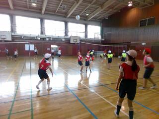 チームで協力して、3回でボールをつなぐ練習をしました。
