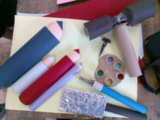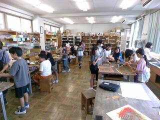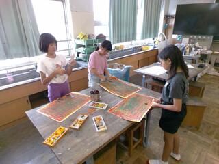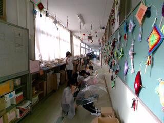 図画工作クラブでは、展覧会に向けて校内装飾づくりをしています。ローラーで色を塗ったり、クレヨンの色を混ぜて葉っぱを作ったり…ビニール傘が素敵なかざりに大変身!?完成が楽しみです。