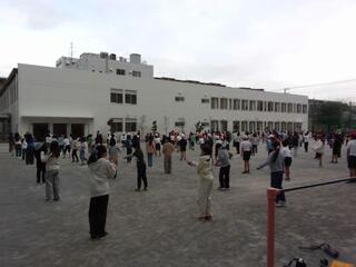 1・2年生は「パプリカ」の曲に合わせて、3年生以上は「ダンスホール」の曲に合わせて短なわを跳びます。