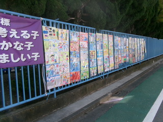 4月、正門前に1年生のときに描いた交通安全ポスターが掲示されました。
