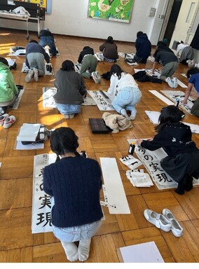 6年生は1月8日、9日に書初め大会を行いました。全員が心を落ち着かせ、お手本をよく見て一画一画丁寧に「夢の実現」を書き上げることができました。今後の学校生活も、子ども達の「夢の実現」に向けて日々成長できるよう支援していきたいと思います。今学期も温かいご支援、どうぞよろしくお願いいたします。