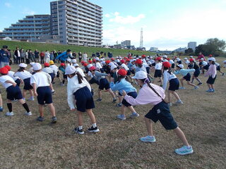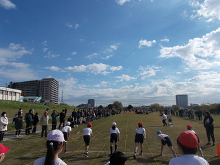 快晴の多摩川土手で、走り方教室と持久走大会を行いました。10月から国士舘大学の陳洋明先生をお迎えし、走るための感覚づくり、体づくりについて教えていただき、当日を迎えました。当日は一人ひとりが一生懸命走り、「試走から1分もタイム縮んだんだよ」「緊張した!応援してくれる人いっぱいいたな」と達成感でいっぱいでした。応援に来ていただいた保護者、地域の皆様、ありがとうございました。