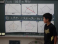 「四角形は、三角形が二つに分けられるから…」や「五角形は、三角形が三つに分けられるから…」と