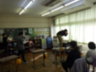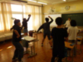 先生と一緒に、英語の歌を歌いながら、元気に腕を振ってライブ会場のような盛り上がりでした。