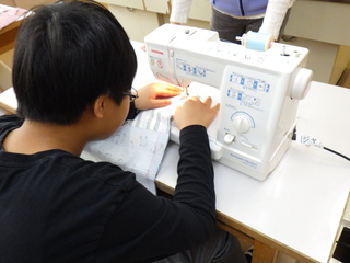 上糸と下糸のセッティングや、まっすぐに縫うことなど、失敗しないようにと真剣に、集中して取り組んでいました。