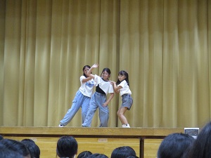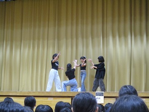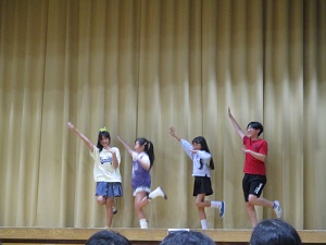 ダンスクラブの発表が休み時間にありました。全校児童のうち半数以上のこどもたちが応援にかけつけました。