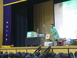 今日は全校で科学実験ショーを体験しました。空気砲はライブでしかみられないものでした。また、きれいな水に変える実験も貴重な体験でした。科学が大好きなこどもがたくさん生まれます!!