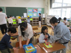 6年生が1年生のお世話を一生懸命やって