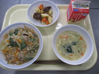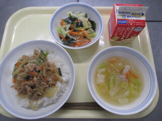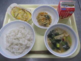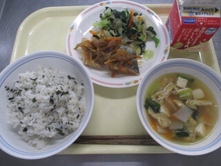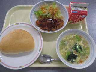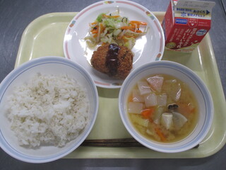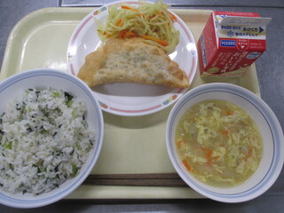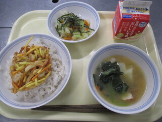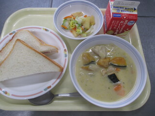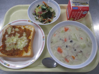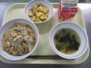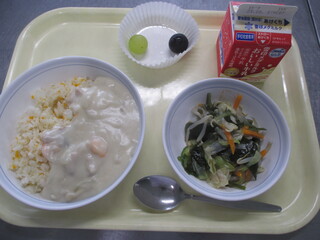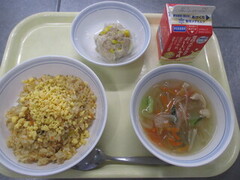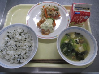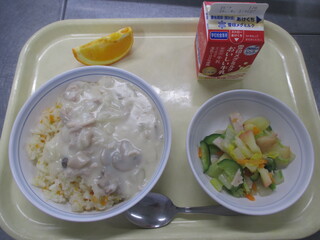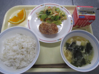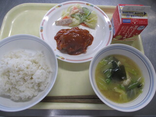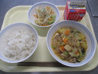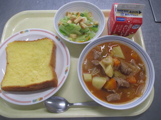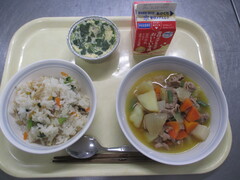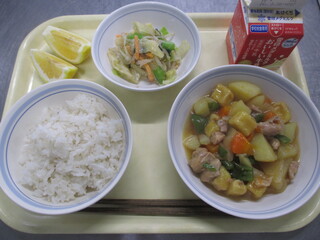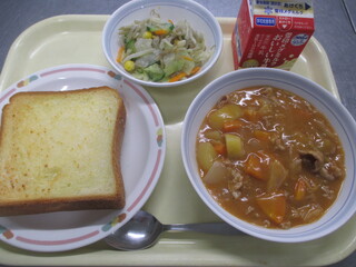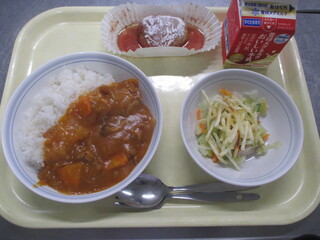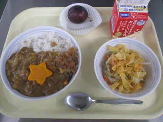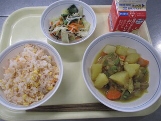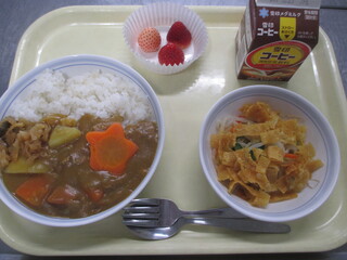 カレーライス 牛乳 わかめサラダ