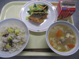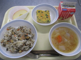 今日は6年生の卒業をお祝いするお赤飯のメニューです。