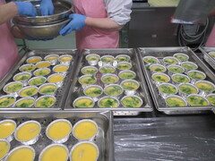 一つ一つに具を入れて、卵とだしを合わせた卵液を加えて蒸します。