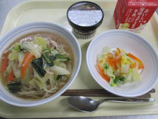 しょうゆラーメン 白菜の甘酢和え セレクトアイス(バニラ味、ストロベリー味、チョコ味) 牛乳