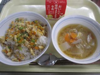 高野豆腐のそぼろ丼 豚汁 牛乳