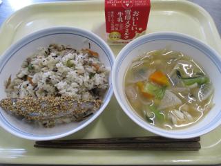 たけのこごはん 魚の西京焼き けんちん汁 牛乳