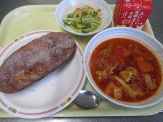 パン 小松菜コロッケ ボイルキャベツ トマトスープ 牛乳