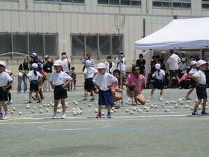 雨が降る前に、校庭で実施できました。みんな