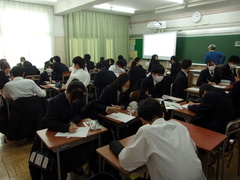 校医である、ほりクリニック院長の堀雅明先生を講師でお招きして、がん教育を実施しました。個人で考えグループで話し合い、有意義な時間になりました。
