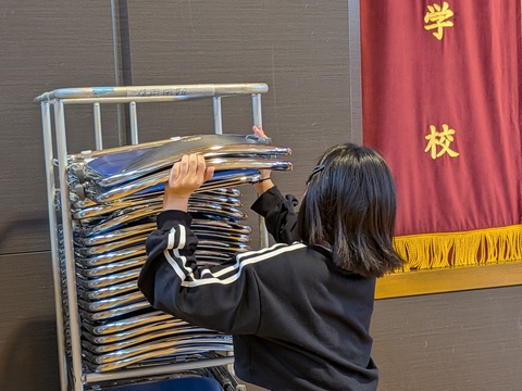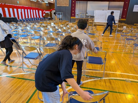 卒業式、入学式仕様になっていた体育館の復旧作業を6年生が行いました。私も一緒に行いましたが、かなりの重労働。