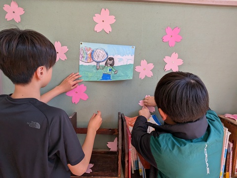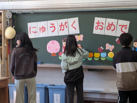 6年生が登校し、月曜日に行われる入学式の準備を行いました。
