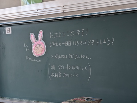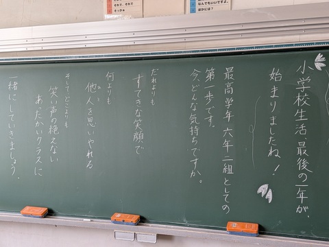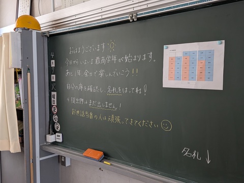 黒板には昨日のうちに準備したメッセージが黒板に書かれています。