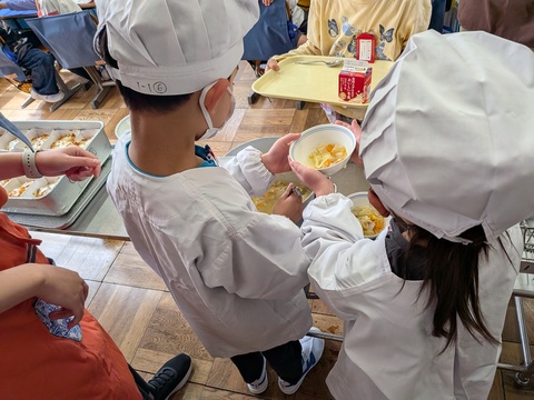 まずは配食、配膳の仕方をみんなで学んで、丁寧に準備をしました。