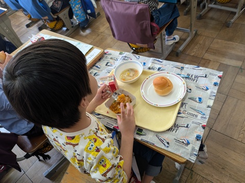 一口食べるごとに笑みがこぼれ、満面の笑みに代わっていく一年生。