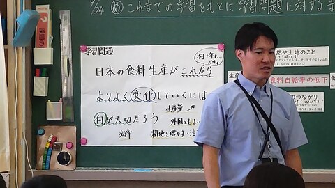 9月は五年生が研究授業を行い、みんなで協議をしました。今日は5年3組で社会科の授業。