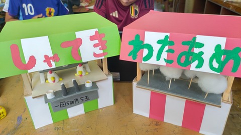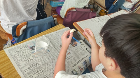 2年生が夏休みの思い出を紙粘土で形に表していました。
