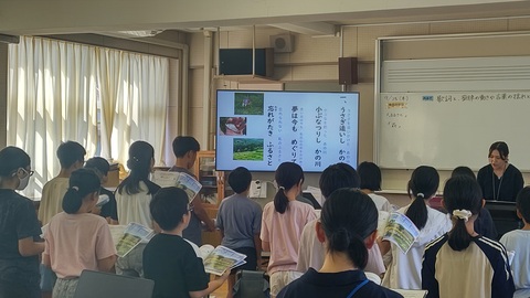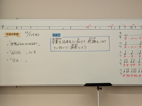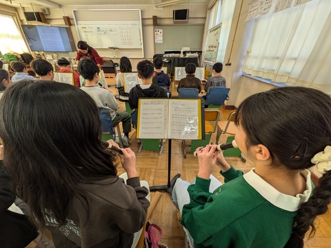 2年生の教室から聴こえるこどもたちの素敵な歌声に交じって、清水先生の声がします。
