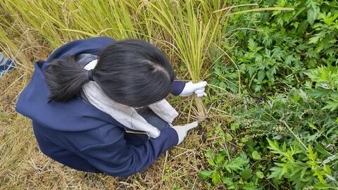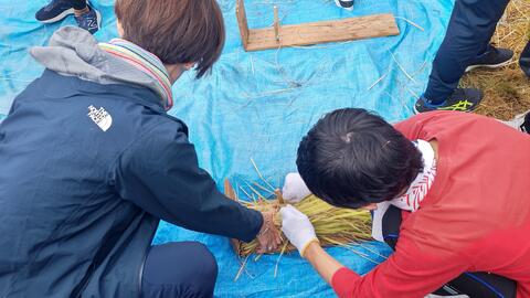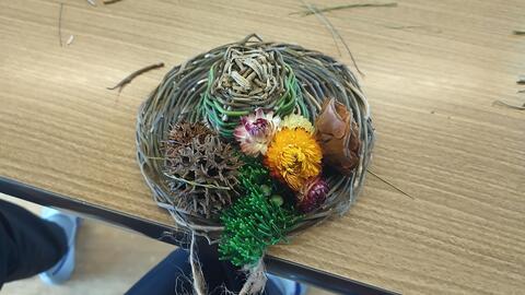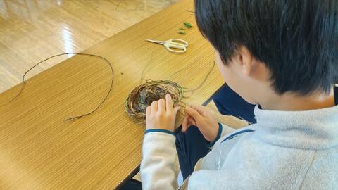 1年生が自分たちが育てた朝顔の弦を使ってリースづくりに挑戦しました。