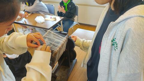 三年生が育てた蚕の卵から糸を取りました。