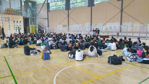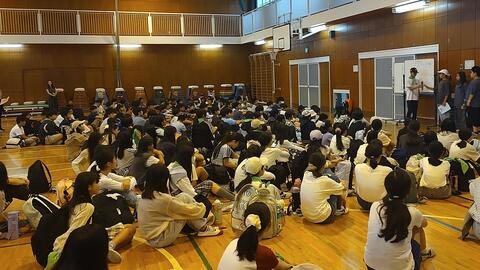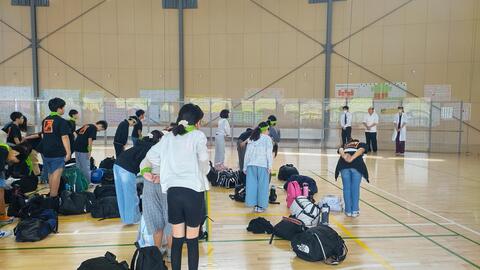 初日はあいにくの雨。体育館での練習となりました。