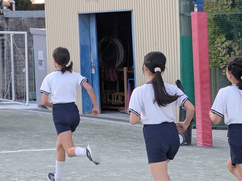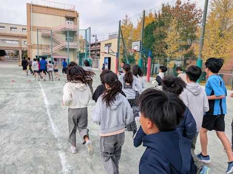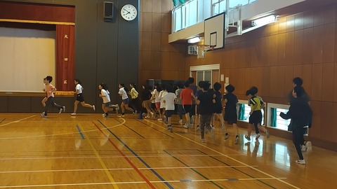 12月に開催される駅伝大会に向けて頑張りたい。運動会の徒競走で速く走りたい。運動をしているから体力をつけたい。いくつかの声にこたえて、ランニング教室を開催しました。5年生と6年生を対象にだれでも参加できます。走るのが速くなくても全く問題はありません。それぞれの目標に合わせてアドバイスをします。今日は約20人が参加しました。みんな真剣に動きのポイントを聞いて、自分の走りに生かしていました。走ることは努力をすることで必ず速くなります。人と比べて速くなるかは相手次第ですが、今の自分より速くなることは確実です。努力すること、自分を向上させることは運動以外のことにも通じます。興味のある人は、次回からでも参加できます。