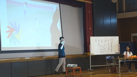 聞こえない状況でのコミュニケーションの取り方やスポーツシーンにおける工夫についてお話をしていただいたり、伝言ゲームをしたりしてわかりやすく教えていただきました。