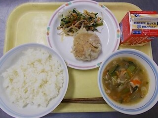 ごはん 牛乳 手作りしゅうまい ナムル マロニースープ