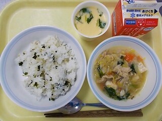 ちりめんごはん 牛乳 茶碗蒸し たらのちり鍋