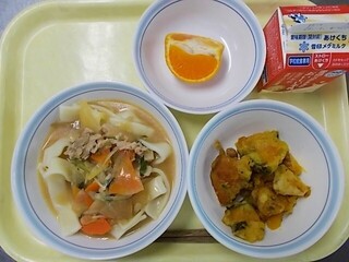 ほうとう 牛乳 かぼちゃと大豆の天ぷら 早香