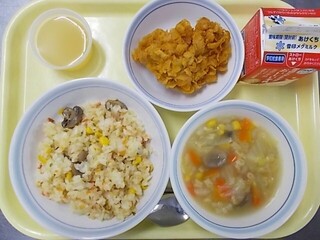 カラフルピラフ 牛乳 ロックチキン ABCスープ アップルゼリー