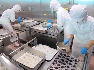鏡開きにちなんで、甘く煮た小豆を白玉もちにかけて白玉ぜんざいを作りました。