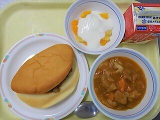 ナン 牛乳 キーマカレー ツナひじきサラダ みかん