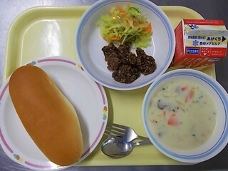 コッペパン 牛乳 くじらの竜田揚げ コールスローサラダ ミルクスープ