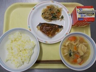 ごはん 牛乳 焼き魚 ごまあえ 豚汁