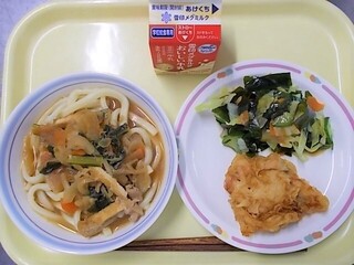 みそ煮込みうどん 牛乳 魚の天ぷら キャベツとわかめの和え物
