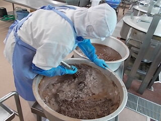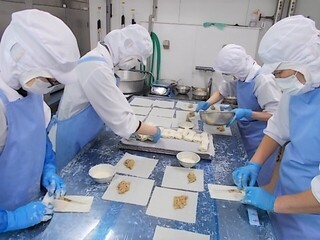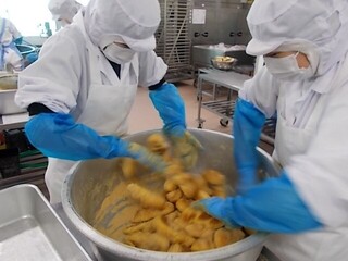 しいたけやエリンギ、えのきたけがたっぷり入った春巻きは、きのこが入っていることがわからないくらい具になじんで、とても食べやすく仕上げることができました。今日は、1050個の春巻きを作りました。
