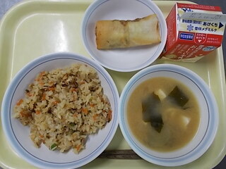 とり肉野菜飯 牛乳 きのこ春巻き みそ汁~うめだっ子セレクト5~