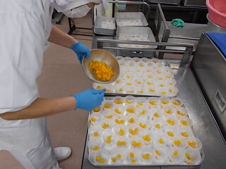 桃の節句にちなんで、桃を入れたカルピスゼリーを作りました!