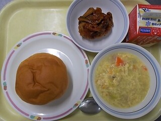 ミルクパン 牛乳 煮込みハンバーグ 洋風卵スープ