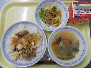 すき焼き丼 牛乳 ごまあえ 具だくさんみそ汁